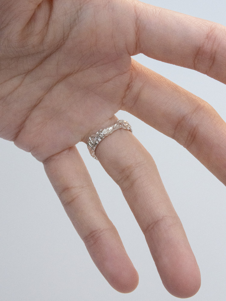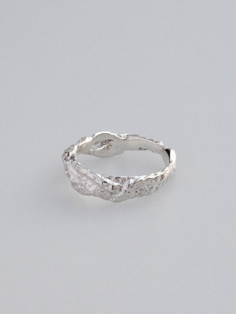 은이 불에 녹으며 레이스와 비슷한 형태가 자연스럽게 짜여지는 반지입니다.