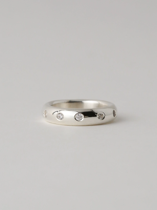 화이트 스톤이 일정한 간격으로 셋팅된 클래식 링.