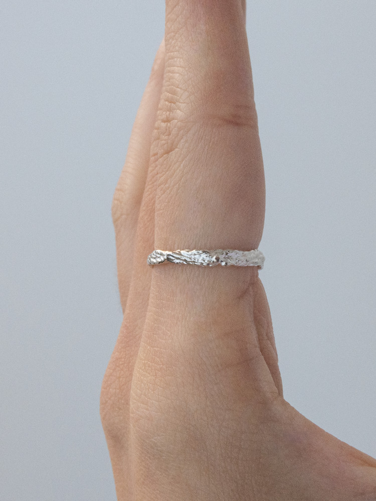 은이 불에 녹으며 레이스와 비슷한 형태가 자연스럽게 짜여지는 반지입니다.